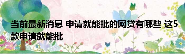 当前最新消息 申请就能批的网贷有哪些 这5款申请就能批
