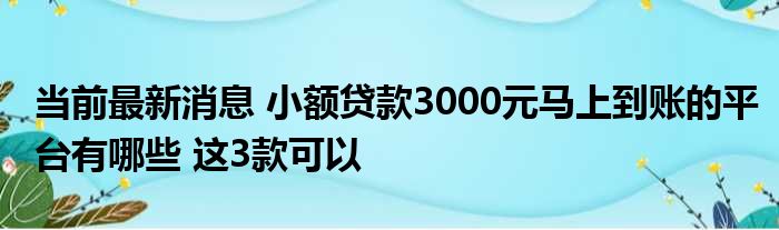 当前最新消息 小额贷款3000元马上到账的平台有哪些 这3款可以