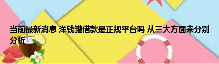 当前最新消息 洋钱罐借款是正规平台吗 从三大方面来分别分析