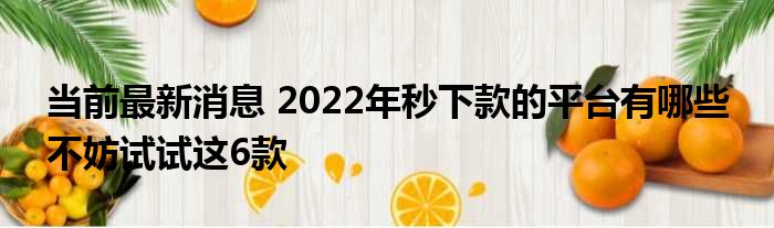 当前最新消息 2022年秒下款的平台有哪些 不妨试试这6款