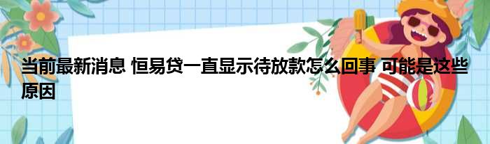 当前最新消息 恒易贷一直显示待放款怎么回事 可能是这些原因
