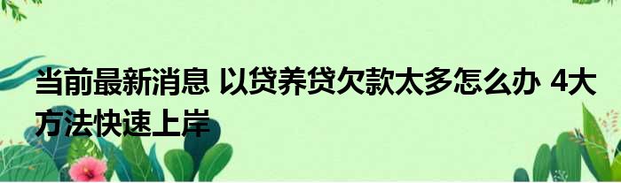 当前最新消息 以贷养贷欠款太多怎么办 4大方法快速上岸