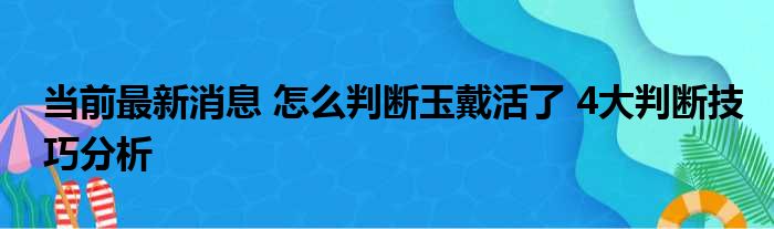 当前最新消息 怎么判断玉戴活了 4大判断技巧分析