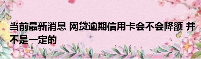 当前最新消息 网贷逾期信用卡会不会降额 并不是一定的