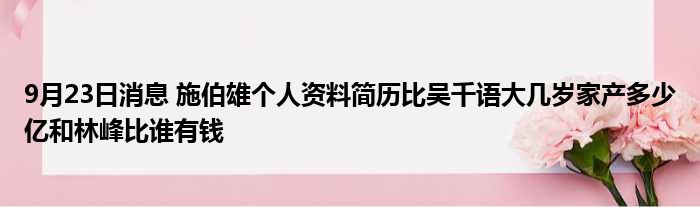 9月23日消息 施伯雄个人资料简历比吴千语大几岁家产多少亿和林峰比谁有钱