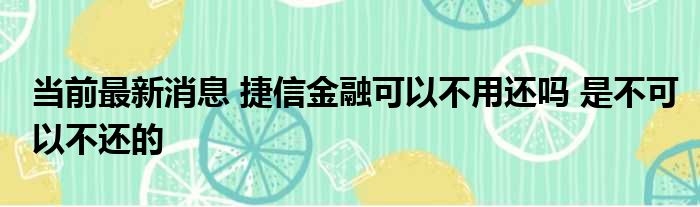 当前最新消息 捷信金融可以不用还吗 是不可以不还的