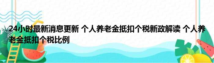 24小时最新消息更新 个人养老金抵扣个税新政解读 个人养老金抵扣个税比例