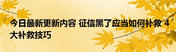 今日最新更新内容 征信黑了应当如何补救 4大补救技巧