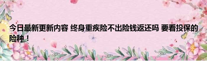 今日最新更新内容 终身重疾险不出险钱返还吗 要看投保的险种!