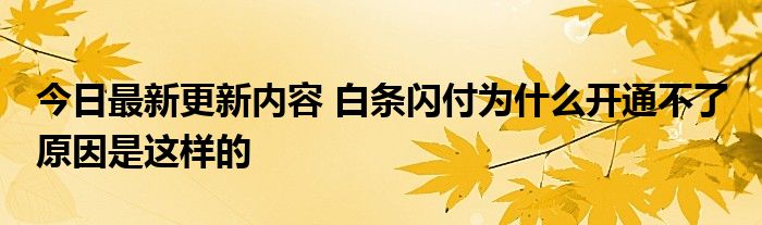 今日最新更新内容 白条闪付为什么开通不了 原因是这样的
