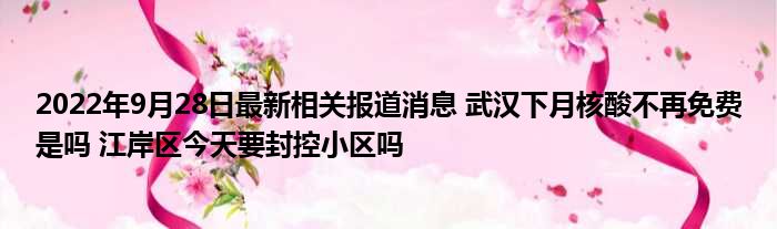 2022年9月28日最新相关报道消息 武汉下月核酸不再免费是吗 江岸区今天要封控小区吗