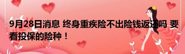9月28日消息 终身重疾险不出险钱返还吗 要看投保的险种!