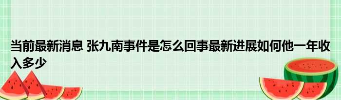 当前最新消息 张九南事件是怎么回事最新进展如何他一年收入多少