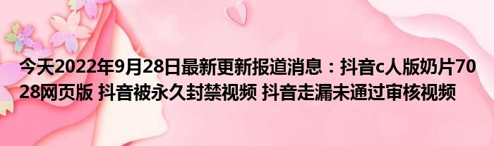 今天2022年9月28日最新更新报道消息:抖音c人版奶片7028网页版 抖音被永久封禁视频 抖音走漏未通过审核视频