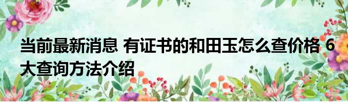 当前最新消息 有证书的和田玉怎么查价格 6大查询方法介绍
