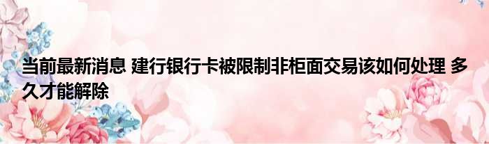 当前最新消息 建行银行卡被限制非柜面交易该如何处理 多久才能解除
