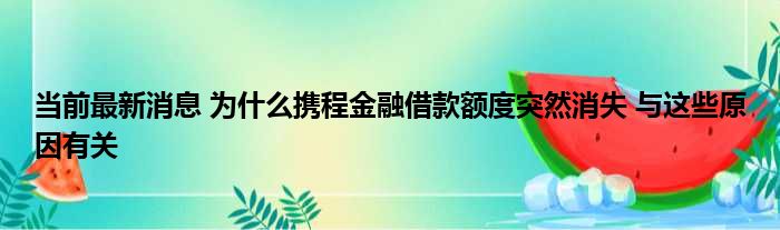 当前最新消息 为什么携程金融借款额度突然消失 与这些原因有关