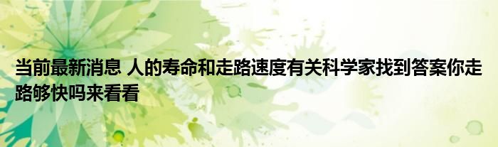 当前最新消息 人的寿命和走路速度有关科学家找到答案你走路够快吗来看看