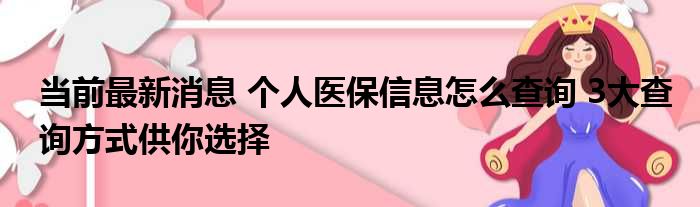 当前最新消息 个人医保信息怎么查询 3大查询方式供你选择