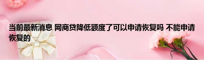 当前最新消息 网商贷降低额度了可以申请恢复吗 不能申请恢复的