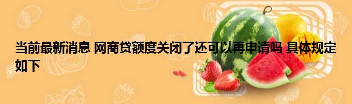 当前最新消息 网商贷额度关闭了还可以再申请吗 具体规定如下
