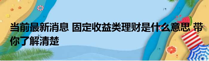 当前最新消息 固定收益类理财是什么意思 带你了解清楚