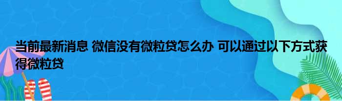 当前最新消息 微信没有微粒贷怎么办 可以通过以下方式获得微粒贷