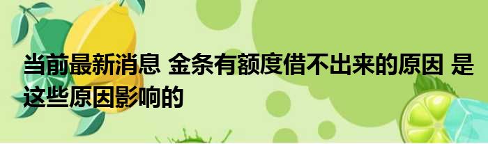 当前最新消息 金条有额度借不出来的原因 是这些原因影响的