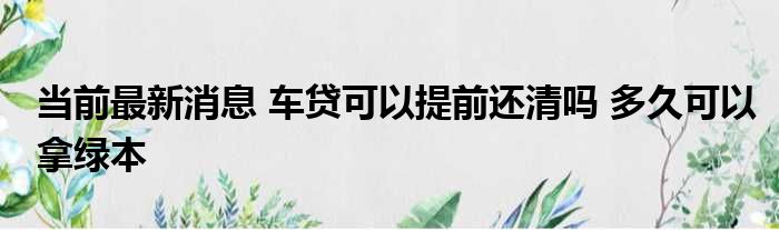 当前最新消息 车贷可以提前还清吗 多久可以拿绿本