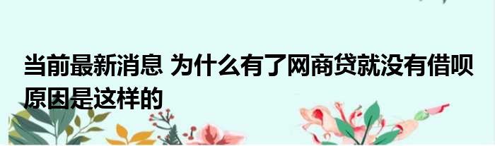 当前最新消息 为什么有了网商贷就没有借呗 原因是这样的