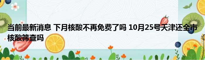 当前最新消息 下月核酸不再免费了吗 10月25号天津还全市核酸筛查吗