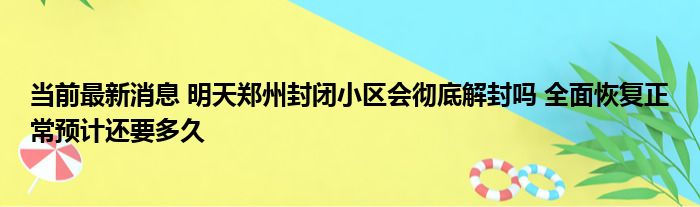 大家目前对于明天郑州封闭小区会彻底解封吗 全面恢复正常预计还要多久方面的信息是相对比较关注的,大家都想要了解一些关于明天郑州封闭