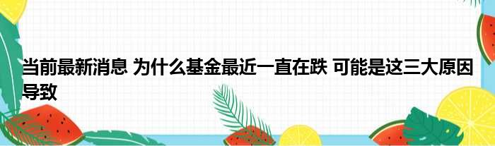 当前最新消息 为什么基金最近一直在跌 可能是这三大原因导致