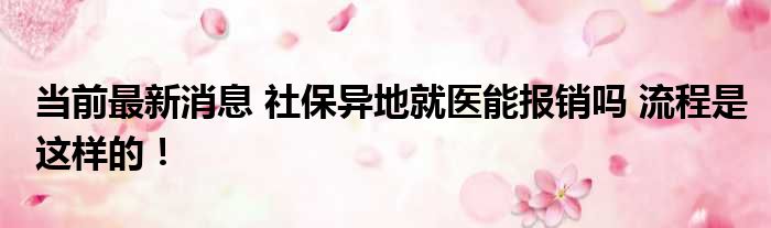 当前最新消息 社保异地就医能报销吗 流程是这样的!