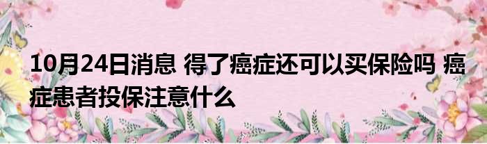 10月24日消息 得了癌症还可以买保险吗 癌症患者投保注意什么