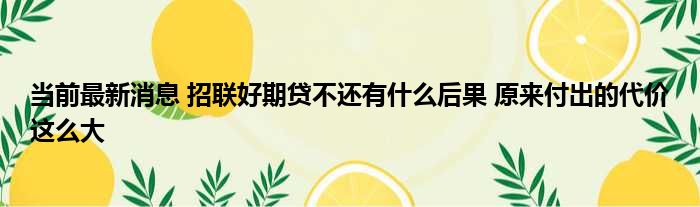 当前最新消息 招联好期贷不还有什么后果 原来付出的代价这么大