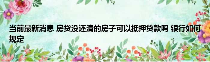 当前最新消息 房贷没还清的房子可以抵押贷款吗 银行如何规定