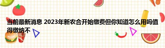 大家目前对于2023年新农合开始缴费但你知道怎么用吗值得缴纳不方面的信息是相对比较关注的,大家都想要了解一些关于2023年新农合开始缴费