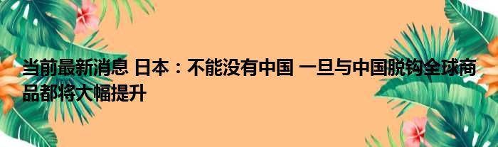 当前最新消息 日本:不能没有中国 一旦与中国脱钩全球商品都将大幅提升