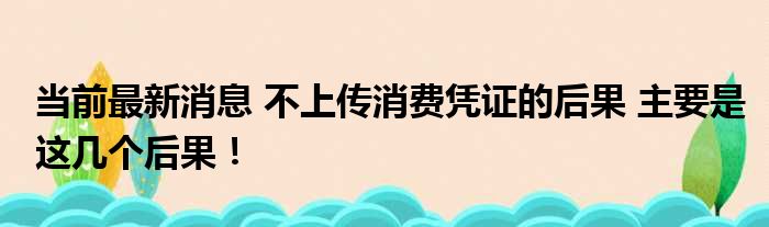 当前最新消息 不上传消费凭证的后果 主要是这几个后果!