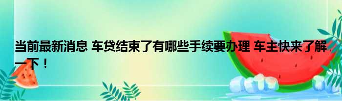 当前最新消息 车贷结束了有哪些手续要办理 车主快来了解一下!