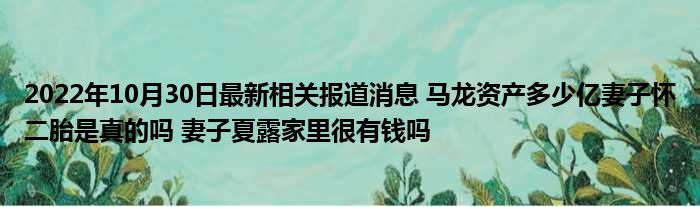 2022年10月30日最新相关报道消息 马龙资产多少亿妻子怀二胎是真的吗 妻子夏露家里很有钱吗