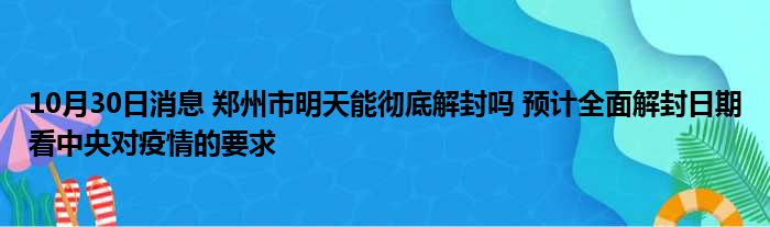 10月30日消息 郑州市明天能彻底解封吗 预计全面解封日期看中央对疫情的要求