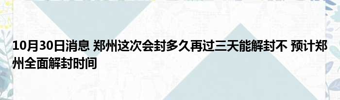 10月30日消息 郑州这次会封多久再过三天能解封不 预计郑州全面解封时间