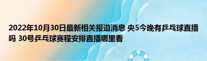 2022年10月30日最新相关报道消息 央5今晚有乒乓球直播吗 30号乒乓球赛程安排直播哪里看