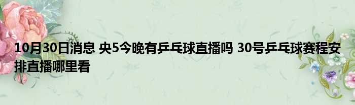 10月30日消息 央5今晚有乒乓球直播吗 30号乒乓球赛程安排直播哪里看