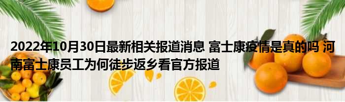 2022年10月30日最新相关报道消息 富士康疫情是真的吗 河南富士康员工为何徒步返乡看官方报道