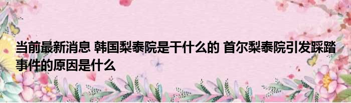 大家目前对于韩国梨泰院是干什么的 首尔梨泰院引发踩踏事件的原因是什么方面的信息是相对比较关注的,大家都想要了解一些关于韩国梨泰院
