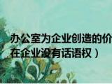 大家好,小东方来为大家解答以上的问题。办公室为企业创造的价值,办公室不能为企业创造利润价值在企业没有话语权这个很多人还不知道,现在让 浏览全文>>