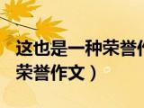 大家好,小东方来为大家解答以上的问题。这也是一种荣誉作文700字左右,这也是一种荣誉作文这个很多人还不知道,现在让我们一起来看看吧!1、 浏览全文>>